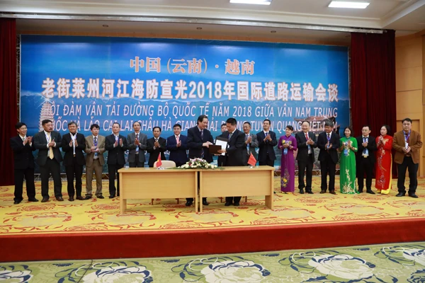 会议中,双方商定了2018年双方各口岸行车许可证交换数量;确定由保险企业自行商谈,为跨境运输车辆提供安全保障;同意新增越南广宁省为中越国际道路运输会谈机制成员。会议还就推进运营昆明—河口口岸(中国)—老街口岸(越南)—河内—海防和文山—天保口岸(中国)—清水口岸(越南)—河江国际道路客货运输线路、昆明—河口口岸(中国)—老街口岸(越南)—沙巴国际客运运输线路;新增昆明—河口口岸(中国)—老街口岸(越南)—河内—海防—广宁国际道路旅客运输线路和文山—马关—都龙口岸(中国)—箐门口岸(越南)—谷排镇—箐门县—河江,金平县—金水河口岸(中国)—马鹿塘口岸(越南)—莱州市国际道路客货运输路线;越南鲜活农产品、水产品到中国云南昆明市的直达运输;联合实施《大湄公河次区域便利货物及人员跨境运输协定》等事宜深入交换意见,并达成广泛共识,一致表示针对以上共识将积极上报各自国家交通运输管理部门,完善审批手续,落实双边政策,争取早日实现。会谈在友善和坦诚的气氛中进行,取得预期的成果。