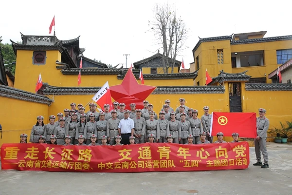 “听吧!战斗的号角发出警报。穿好军装拿起武器,共青团员们集合起来踏上征途……”伴随着铿锵有力的《共青团员之歌》,50余名青年红军战士整齐有序地集结在柯渡红军长征纪念馆广场,意气风发地准备北上长征。追梦需要激情和理想,圆梦需要奋斗和奉献。五四青年节当天,省交通运输厅团委联合中交云南公司举办“重走长征路 交通青年心向党”主题团日活动,组织团员青年参观柯渡红军长征纪念馆并重走长征路。