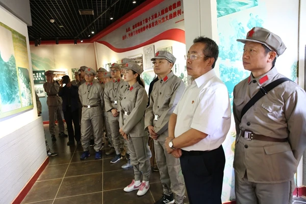在柯渡红军纪念馆广场,统一着红军服的交通青年英姿飒爽、朝气蓬勃。经过喊号列队,队形整齐有序,大家精神抖擞。齐声唱响《没有共产党就没有新中国》等红歌,表达了交通青年一心向党的爱国情怀。举手重温入团誓词,宣誓了大家发扬革命传统、继续新的长征的决心和勇气。通过参观红军旧址、缅怀革命先烈,大家纷纷表示:没有红军的浴血奋战,就没有我们今天的美好生活。要高举习近平新时代中国特色社会主义思想伟大旗帜,让吃苦耐劳、勇往直前的长征精神薪火相传,争做社会主义事业的建设者和接班人。在重走长征路的“爬雪山”“过草地”拓展训练中,大家积极发挥团队精神,群策群力、友爱互助,不断攻坚克难、奋勇前进。在长征路上,大家合力救助“伤员”,还积极支农收土豆。