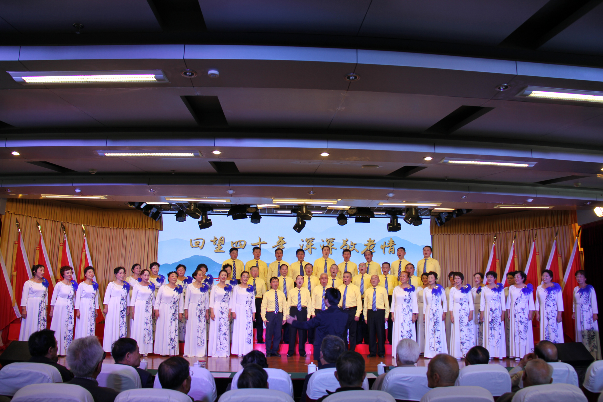 在文艺汇演环节,厅秋之韵合唱团一首《牵手》,在专业指导老师的指挥下,拉开了载歌载舞的序幕,掀起了庆祝活动的第一个小高潮。低声部浅吟低唱,高声部高亢嘹亮,和声柔和优美,恰到好处的衬托和衔接,将本是情侣间的相濡以沫,手牵手历经风雨相互扶持到老的深厚感情引用到老同志对交通运输事业的深情牵挂和无限热爱。《这就是我的祖国》则是老同志们对伟大祖国在艰难奋进中不断收获希望、发展兴旺的自豪咏叹,被反复吟唱的“永远年轻”则是对祖国万古长青的衷心祝福。