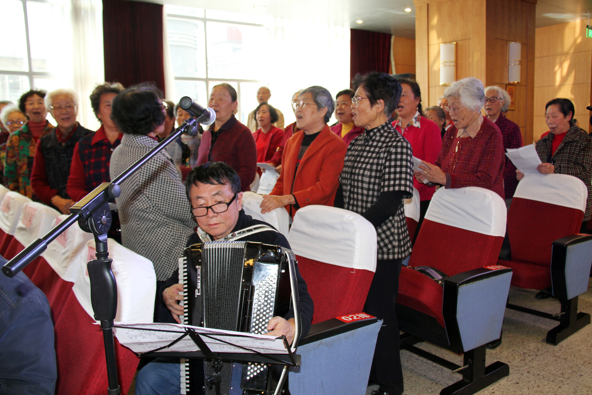 成立了25周年的厅机关老年歌咏队,现有35名队员,平均年龄75岁以上,80岁以上的队员占了总数的40%,这样一支高龄的歌咏队坚持每周1次的歌唱训练,他们久不登台,却愿意在这样一个欢乐的节日里献上他们的保留节目《沁园春.雪》和《初心》,表达对中国共产党、对人民和对美好生活的无限热爱。秋之韵合唱团部分团员还分别为观众演出了舞蹈《又见北风吹》《中国好运》,她们在舞台上忘记了年龄,她们用激情以及对艺术的热爱舞出了不一样的夕阳红。厅机关离退休柔力球队则借《母亲是中华》,充分展示了矫健柔美的身姿,她们接球、抛球,动作精准、流畅,舞出了老同志朝气蓬勃的活力与精气神,舞出了对祖国母亲的深深眷恋。
