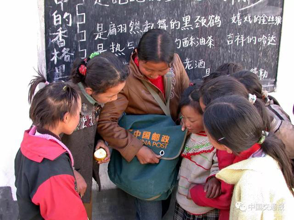 看到藏区孩子们能走出大山,接受好的教育,她心里就非常高兴。只要通知书一到,看见信封上那一个个熟悉的名字,就好像看见乡亲们一张张期盼的脸,好像听到他们在读了亲人来信后开心的笑声,一想到这些,她就坐不住,脚也痒痒的,什么样的艰难路程也挡不住她,只有把邮件送完了,心才会踏实下来。