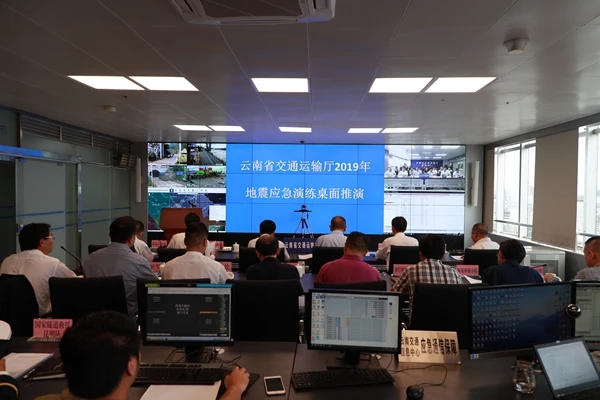 在厅机关十九楼指挥中心,参加演练人员通过视频会议系统,听取了玉溪市交通运输局、省公路局、省路政总队等6家单位的防灾减灾救灾工作情况汇报。