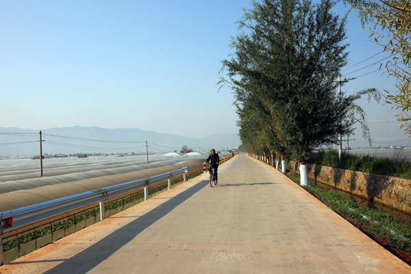 按照“公路+扶贫”、“公路+产业”、“公路+旅游”等模式,鹤庆县农村公路建设始终坚持“三个结合”:一是坚持完善路网与提高等级相结合,先后启动了鹤关高速、鹤剑兰高速、松六公路、剑鹤二级公路等一批重点项目建设,宾鹤高速、西黄线即将开工建设,项目建成后鹤庆县公路路网结构进一步完善;二是坚持农村公路建设与脱贫攻坚相结合,投入资金2.41亿元完成西邑至七坪至北衙、绿荫潭和马家坝易地扶贫搬迁安置点及脱贫乡镇农村公路等67个建设任务,全面改善提高2个建档立卡贫困乡镇、59个建档立卡贫困村通行条件,在农村公路硬化过程中,采用宽容相济的设计理念,尽可能增加路面宽度,确保了人民群众的安全舒适出行,为鹤庆脱贫摘帽打下了坚实的交通基础;三是坚持公路建设与产业发展相结合,围绕工业经济、旅游业发展,启动园区南北线、新华村旅游公路改造等项目,加快推进工业园区西邑至奇峰公路、铁路专用线前期工作,切实提升产业区交通承载能力。截至目前,全县7镇2乡117个村(居)委会已硬化,30户以上654个自然村已实现通达(其中459个村已硬化,硬化率达70.2%)。实现县通高速、乡镇通畅、行政村通油,基本形成了“两纵、三横、两环、六连接”的交通骨干网络。