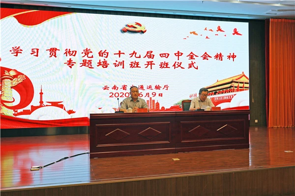 6月9日,省交通运输厅在厅党校(交通技师学院白鱼口校区)举行学习贯彻党的十九届四中全会精神专题培训班,目的是让全厅党员干部全面准确把握十九届四中全会核心要义和习近平总书记考察云南重要讲话精神。厅长、党组书记邱江为厅党校揭牌并作动员讲话。