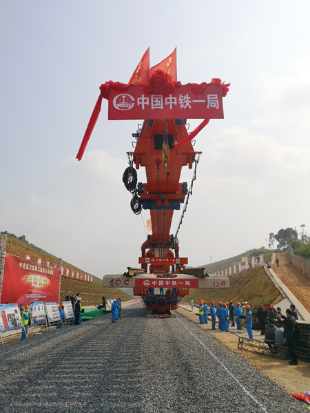 “受当前疫情和隧道控制性工程建设进度的影响,全线铺轨工期压缩,加之线路坡道大、运距长等因素的干扰,按期完成铺轨任务时间紧,任务重,难度大。”中铁一局玉磨铁路铺架项目部负责人刘树公说,我们创新采取专业化的运输和管理模式,前期采用架桥机进行T梁架设,后期采用国内最先进的CPG500型铺轨机进行500米长钢轨铺设,边铺边架,人停机不停,双班轮流作业,高效推进铺轨施工,按期完成建设任务。