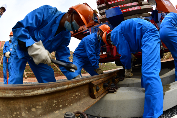 4月7日9时许,随着中铁一局铺架机将一节25米的轨排平稳地安放在云南省玉溪市近郊的路基上,标志着中老铁路国内玉溪至磨憨段铺轨全面启动,预计明年4月铺轨与老挝段联通,为2021年年底开通奠定基础。