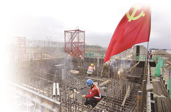 江西信江双港航运枢纽疫情防控与工程建设同步有序推进。李清宇 摄