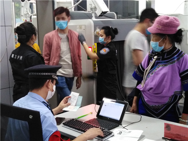 “按照云南省关于强化境外疫情输入防控的有关规定,自3月16日以来,车站加大边境口岸进出人员查验力度,对出入站区的旅客进行100%体温检测登记筛查。”中国铁路昆明局集团河口北站站长许寒瑛说,铁路部门联合地方防控机构,对入滇需要乘坐火车中转前往其它地区的旅游团、外籍旅客等采取测量体温、核实旅客行程、填写《入境健康申明卡》、绿码登记公安复查、全程转运管理等措施,确保境外疫情输入防范可控。