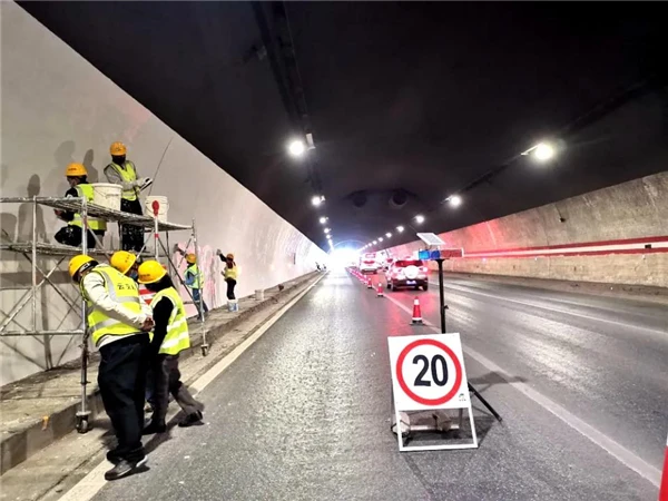 目前,交科院公司正全力推进云南省大滇西旅游环线上的昆安高速碧鸡关隧道景观提升工程建设。为全面落实“安全、环保、舒适、和谐”的公路建设理念,确保最终改造方案和实际效果,公司把碧鸡关隧道昆明端入口50米范围内(施工面积约200平方米)作为试验段进行景观提升改造试验,试验段综合考虑反光性、抗污性能、环保性能、墙体附着性能、耐久性能及性价比等因素,采用多种施工方案进行试验。试验段于2月12日正式开工,18日完工,在试验段取得成功的基础上展开了全面施工。碧鸡关隧道双向车流量较大,在边通车边施工的情况下,为保障安全施工,公司坚持在现场设置专职安全保通员,协调现场的安全施工工作。