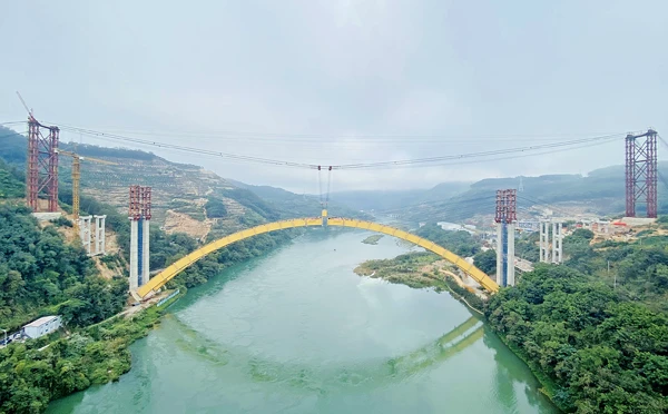 景洪至勐海高速公路澜沧江特大桥钢箱拱合龙