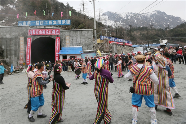 独龙族同胞欢庆高黎贡山独龙江隧道贯通。