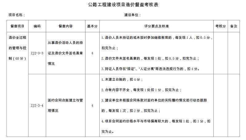 (一)对项目造价管理工作方针、政策和法律、法规、规章、强制性技术标准以及交通运输行业标准、计价依据的执行情况进行监督;