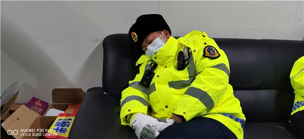 作为一名基层执法人员,黄向阳在一线坚守了15天,聊起这几天的工作,他满是责任与自豪,他说:“只要能保障群众的安全,我们吃点苦,受点累算不了什么。疫情当前,只能舍小家顾大家!”从大年初二(1月26日)开始,黄向阳最初三天是在昭通南客运站卡点执勤,随着29日客运班线及网约车服务的全面停运,他又被安排到了昭通北高速收费站执勤点支援。“女儿打电话问我的第一句话就是什么时候回家,我只能抱歉的对她说爸爸现在有重要工作要做,暂时回不来,只有等到疫情结束了,检测点取消了我才能回来!”谈起家人,他多了些许愧疚。黄向阳的老家在四川,为了事业和爱情他来到了昭通,已经5年没回过老家的他原本计划大年初二回四川老家陪父母过节,结果突如其来的疫情让他再次对年迈的父母“爽约”了。