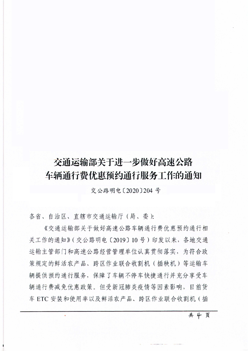 交通运输部关于进一步做好高速公路车辆通行费优惠预约通行服务工作的通知