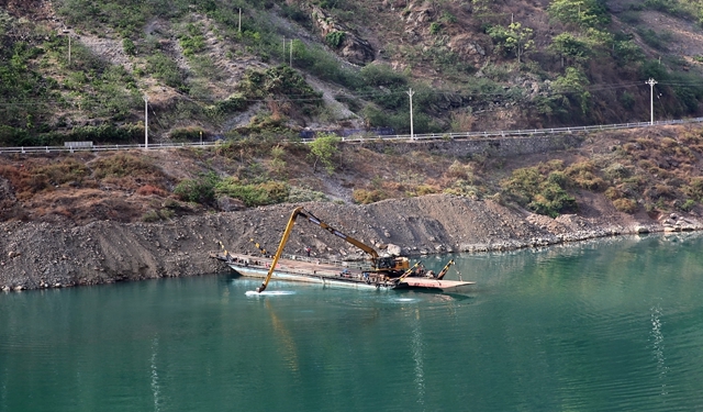 走进黄毛坝滩施工点,施工人员正在进行护岸工程施工。据现场施工执行经理李平介绍:“这里原来是个凸嘴,在凸嘴前后会形成的两个回流旋涡,严重影响航运安全。整治施工就是要切除凸嘴,同时进行护岸施工。由于库区水深,承担航道疏浚的长臂挖机挖掘最深处离水面近20米。金沙江水流速高,炸礁装药的潜水员潜入水中后,如果双手不抓牢暗礁就会被冲走,以往单手装药作业根本无法进行。”