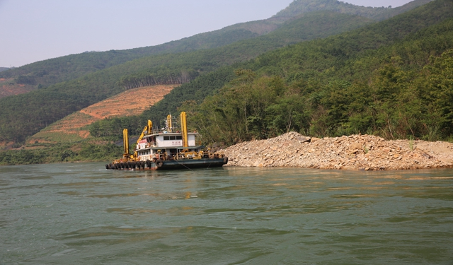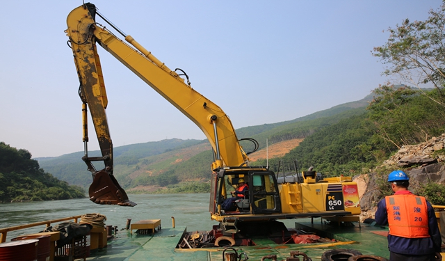 澜沧江是一条山区峡谷河流,滩险弯道多,水流湍急,岸坡陡峭,植被茂密,施工现场道路交通不畅。全河段落差大,流速快,水流紊乱,航道整治施工十分艰难。走进景洪橄榄坝以南的那官清障施工现场,滩险弯多,江水汹涌。在一艘施工船上,长臂挖机正奋力地清除水下暗礁。据承担施工任务的广西新港湾工程公司施工现场负责人李华介绍,公司承担的三道拐至中缅243界碑河段属于典型的山区急流河段,整治措施是清除不满足航道尺度的礁石凸嘴和局部浅区,同时抛筑丁坝、复式坝、潜坝以雍高水位、减小比降。该河段滩险多,流速和比降大,个别滩段断面流速和最大比降造成水下炸礁和整治建筑物施工难度极大。为此,公司积极开展科技创新,取得了钻爆船钻机套管抱紧装置、水下扭王字块安装GPS定位技术等多项适用于山区急流河段施工的新技术、微创新。
