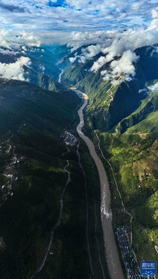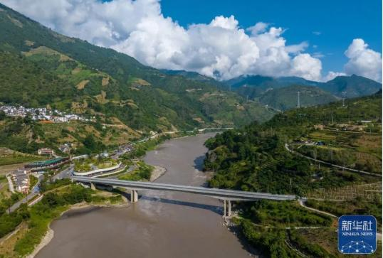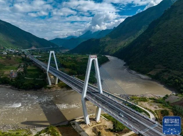 2022年9月13日拍摄的怒江州泸水市小沙坝大桥(无人机照片)。新华社记者 江文耀 摄