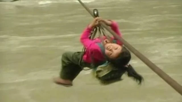 靠溜索飞越峡谷江河