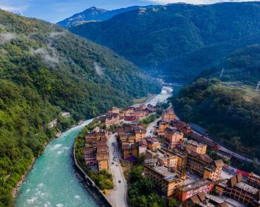 奔腾不息的怒江和巍峨高耸的群山
