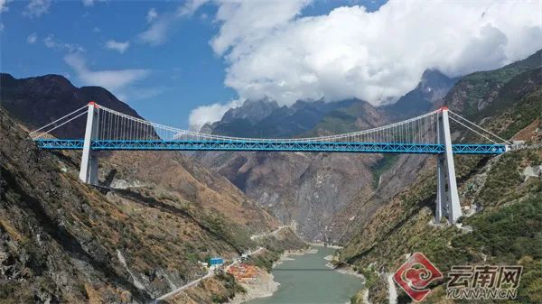 4月13日,由中铁大桥局五公司承建的世界首座大跨度铁路专用悬索桥——丽香铁路金沙江大桥主体工程全部完工,预计6月开始铺轨。丽香铁路是连接丽江与香格里拉的“天路”,金沙江特大桥是全线控制性工程。大桥全长882.5米,主跨达660米,桥面离江面垂直距离约250米,相当于80余层楼房高度。主桥采用悬吊上承式钢桁梁悬索桥,大桥两端均与隧道连接,建成后将创铁路建设最大跨度钢桁梁悬索桥等多项纪录。
