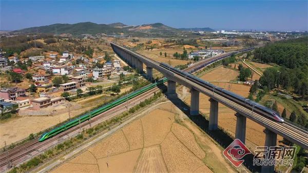 4月11日,云南新建弥(勒)至蒙(自)高铁接入南(宁)至昆(明)高铁(客专)的道岔顺利完成施工,标志着弥蒙高铁成功接入南昆高铁(客专),连通全国高铁网。弥蒙高铁建成通车后,昆明至蒙自2小时内可到达,通过换乘,将压缩滇南城市群至南宁、广州等城市的时空距离,对加快沿线城镇化进程,旅游资源开发、少数民族地区乡村振兴起到积极的推动作用,促进我国与东盟国家间的交流和互联互通。