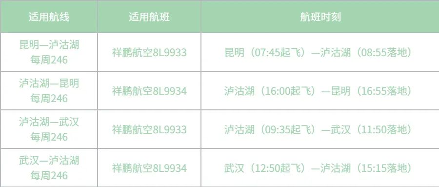 4月26日起,宁蒗泸沽湖机场正式开通武汉=泸沽湖往返航班,恢复昆明=泸沽湖往返航班,同时联合航司推出特价惠民机票。