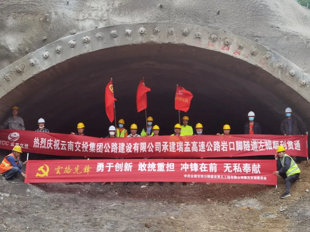 5月3日,瑞(丽)孟(连)高速公路岩口脚隧道左幅贯通,顺利实现岩口脚隧道双幅贯通。