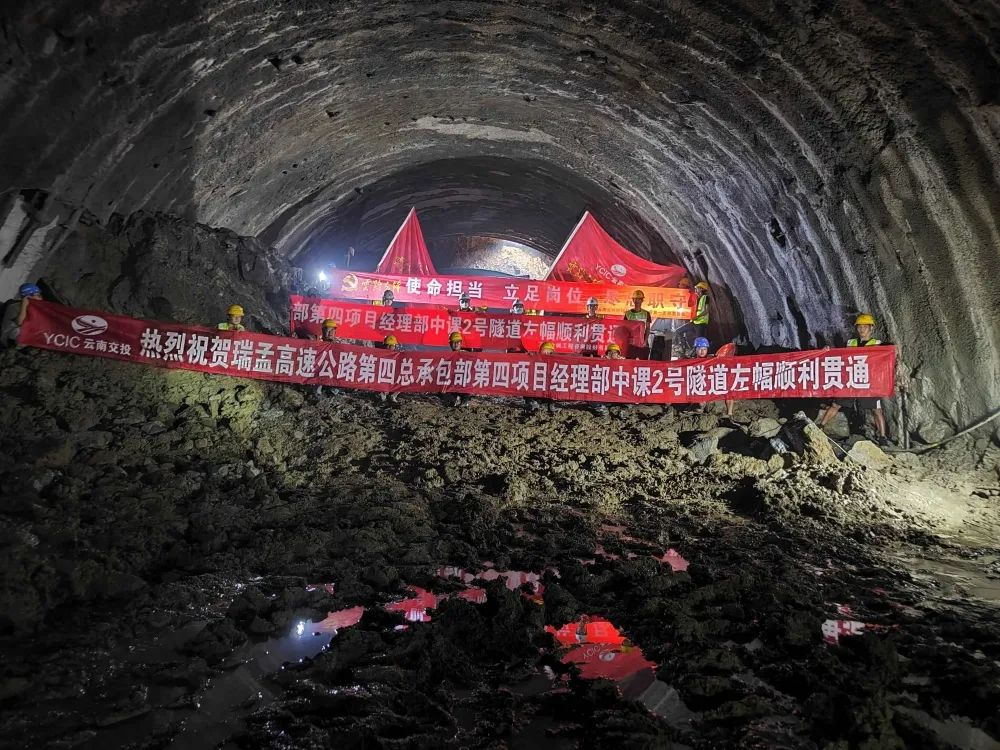 6月27日,瑞孟高速公路中课2号隧道左幅顺利贯通。