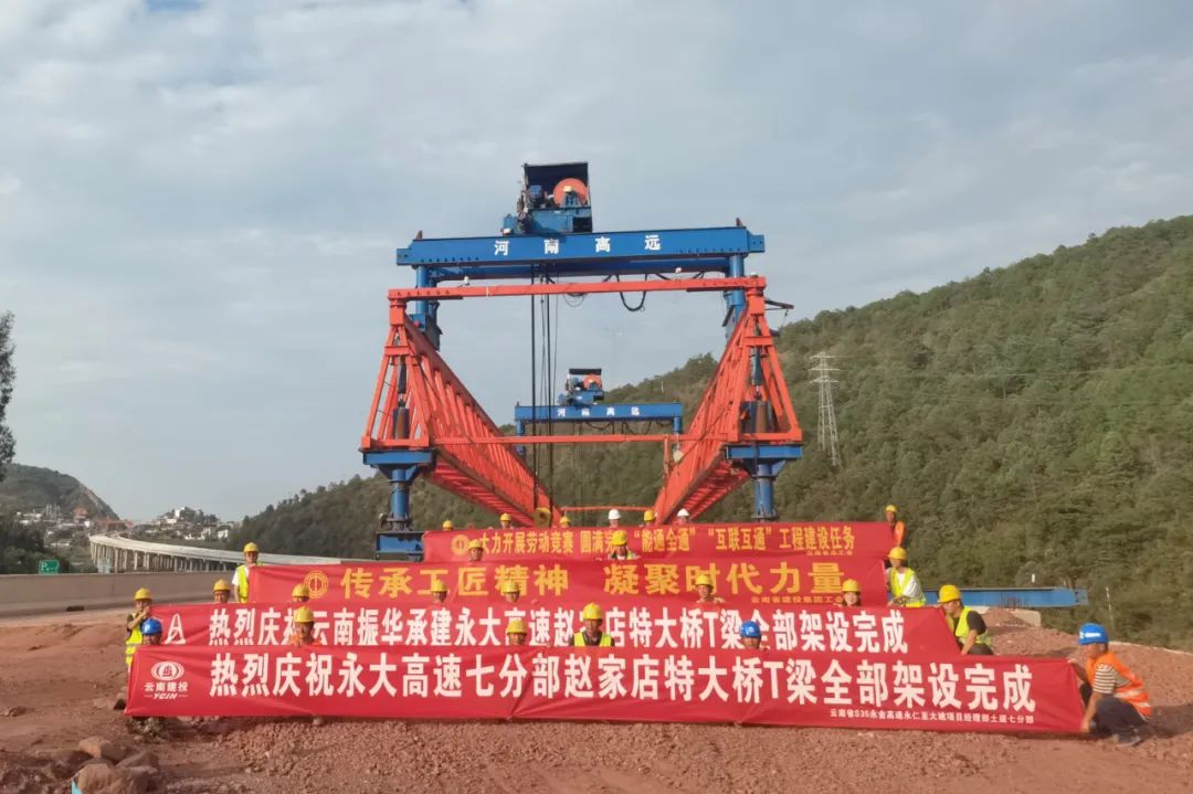 6月30日下午,由省建投集团基投公司投资建设的永大高速赵家店特大桥左幅最后一片T梁架设完成,大桥顺利实现双幅贯通。