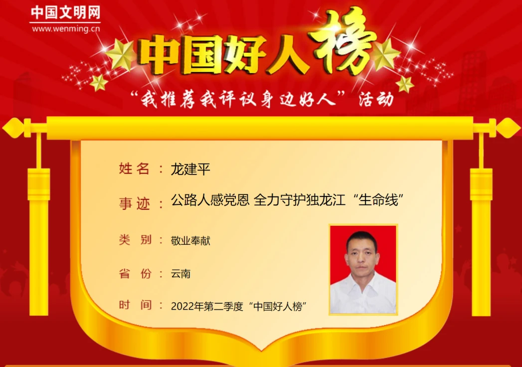 怒江州龙建平荣登“敬业奉献类”中国好人榜
