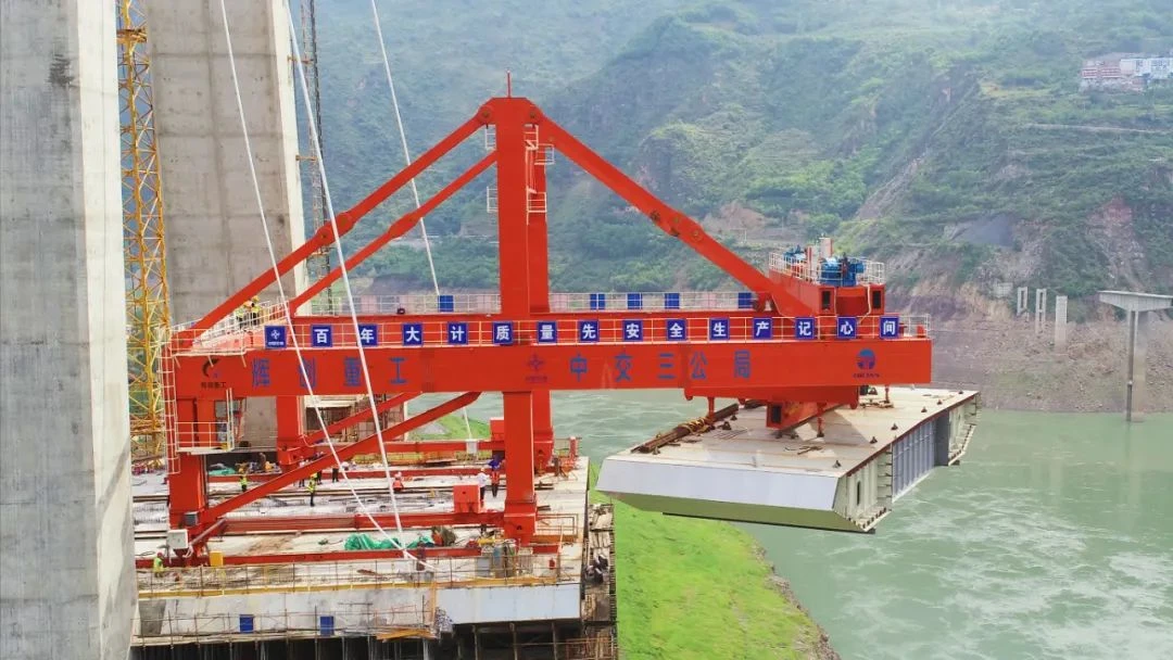 都香高速公路金沙江特大桥主跨钢箱梁成功架设