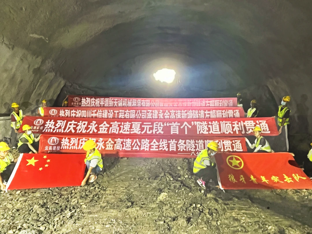 永金高速公路新塘隧道左幅顺利贯通,是永金高速开工建设以来首条贯通的隧道。永金高速新塘隧道左幅全长245米,属小净距短隧道,最大埋深66.66米,围岩级别均为Ⅴ级围岩。