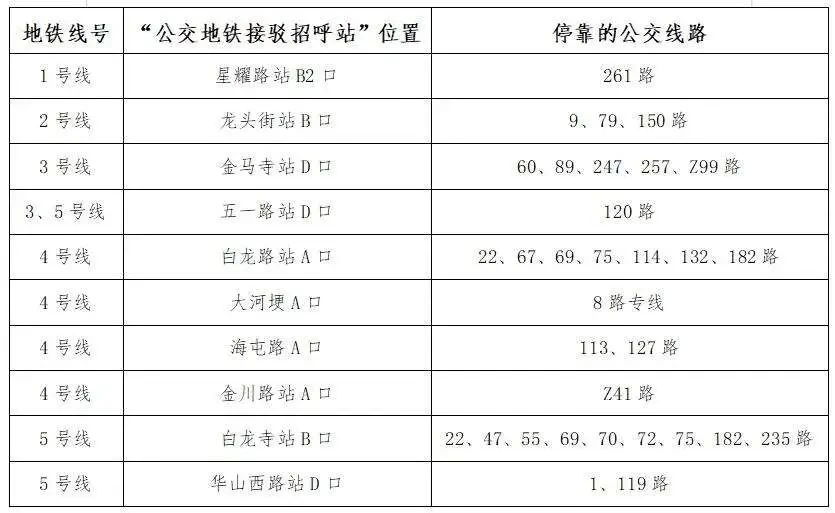 首批10个“公交地铁接驳招呼站”,将于2022年10月24日起,分别增设在:
