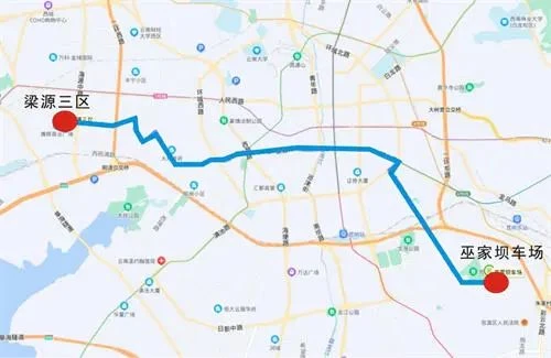 62路起终站为“巫家坝车场(起终站)—梁源三区(终到站)”,线路走向及途经道路不变。