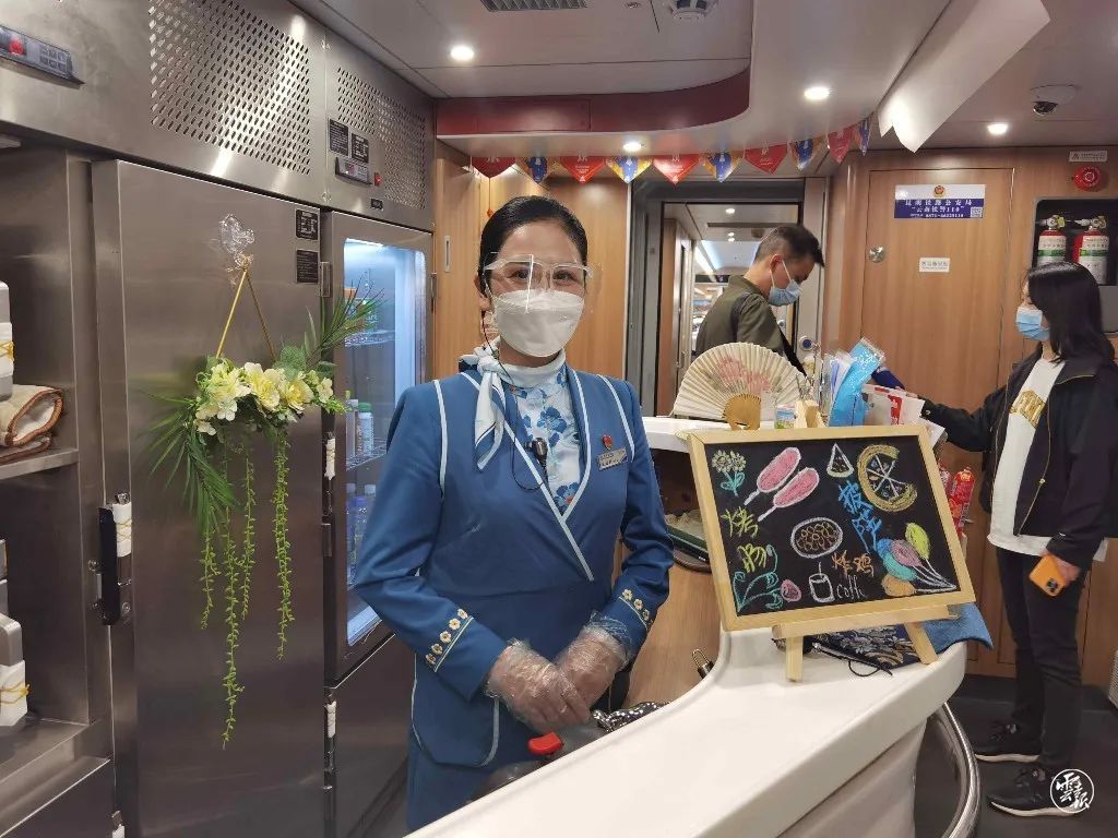 昆明局集团以打造中老铁路高品质列车服务为目标,积极为旅客提供安全、舒适的安馨旅途。途中以旅客需求出发,创新服务举措,在餐吧车设立“安馨服务站”,为旅客提供U型枕、三合一数据线、针线盒、老花镜、防潮垫、儿童(成人)口罩等温馨服务备品,给乘车旅客带来更安全、更温馨、更便捷的乘车体验。6号车厢乘务室设立“妈咪小屋”,为旅客提供母婴哺乳帘、独立包装不同型号的尿不湿、婴儿湿巾、免洗消毒凝胶、玩具等贴心服务备品。