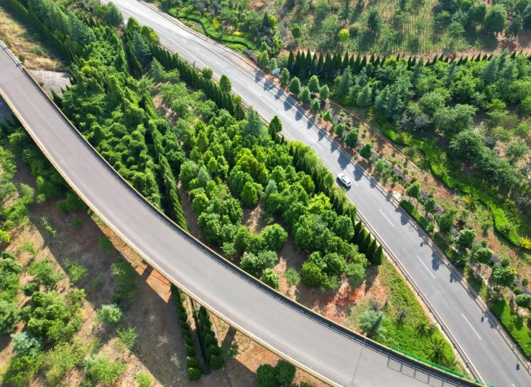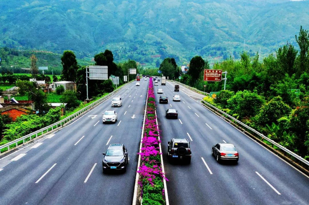 绿美公路建设根据《云南省绿美交通技术指南》及设计要求,按照保护生态、因地制宜、加强管养、适当补植、经济节约的原则,统筹考虑所辖高速公路沿线的环境因素、气候条件、路域实际、技术指标等因素,结合集团绿美公路三年行动方案要求及设计方案,紧紧围绕“效果明显,造价可控”的目标要求,充分考虑路域周边“山水林田湖草”生态环境,通过乔、灌、花、草合理搭配,形成具有较强地域特色和视觉冲击力的植物季相景观,构建层次清晰、界面整洁、区域协调的道路景观效果。