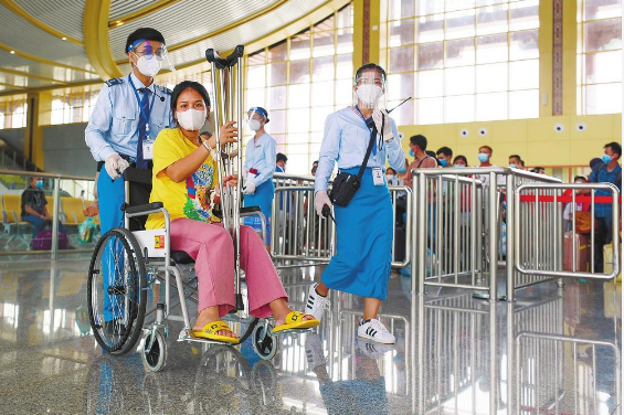 万象运营管理中心职工温馨服务重点旅客 本报通讯员 杨永全 摄