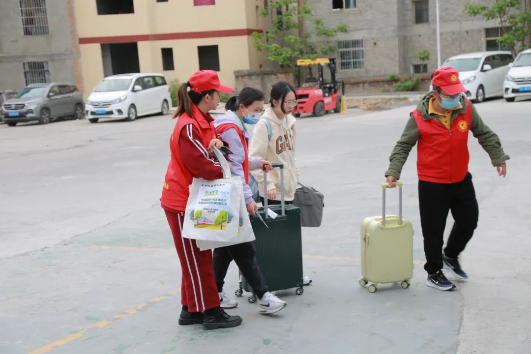 5月9日上午,在昭通城际公交发车点,一群红马甲穿梭其中。