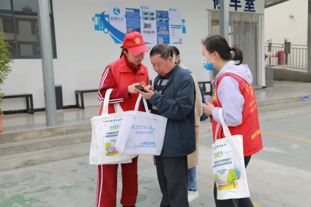 人群中,志愿者来回奔走,无论是耄耋老人,还是童真稚儿,或是热血青年,均是志愿者的服务对象。一会儿为乘客搬运行李、提供购票咨询。一会儿通过文明提醒、发放宣传资料等形式向乘客宣传文明旅游注意事项,增强乘客文明旅游和健康出行的意识。此次活动共计服务120余人,发放文明旅游、绿色出行等宣传资料100余份,围裙、口袋、扇子等物资60余份。
