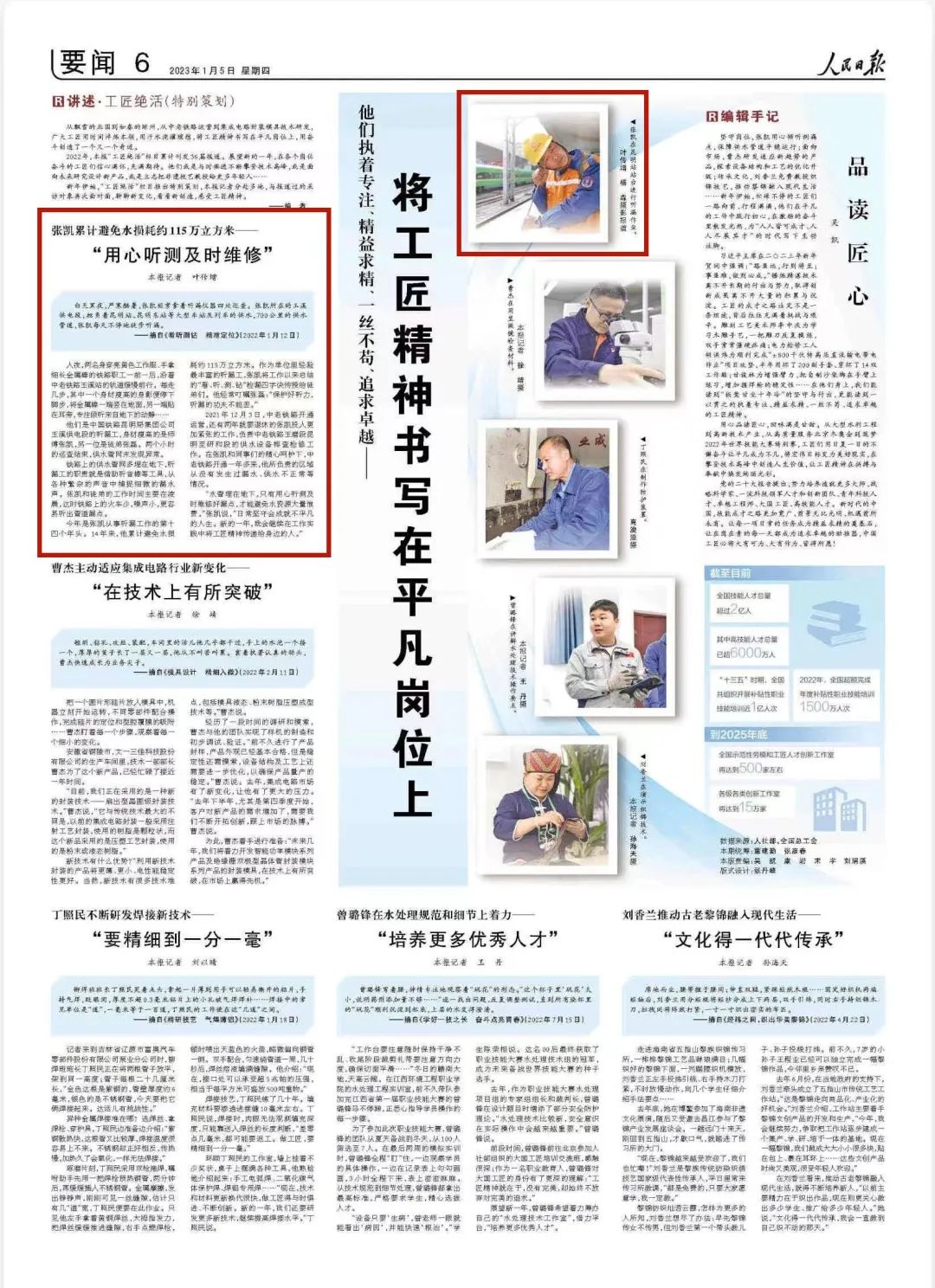 “水管埋在地下,只有用心听测及时维修好漏点,才能避免水资源大量浪费。”张凯说,“日常坚守会成就不平凡的人生。新的一年,我会继续在工作实践中将工匠精神传递给身边的人。”