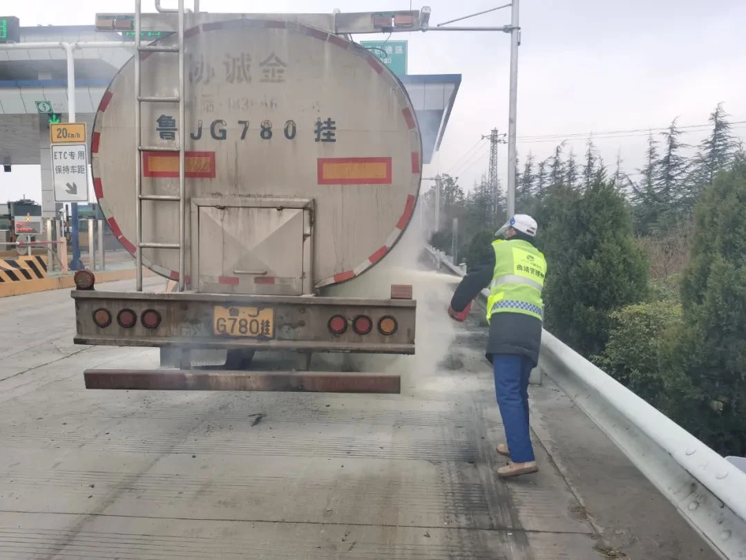 1月23日,一辆拉鲜牛奶的六轴绿通车辆,在进入曲靖管理处陆良北收费站出口车道时,轮胎突然冒烟,随后冒出火苗。危急时刻,当班人员及时拿起灭火器灭火,确保了司乘人员的生命及财产安全。