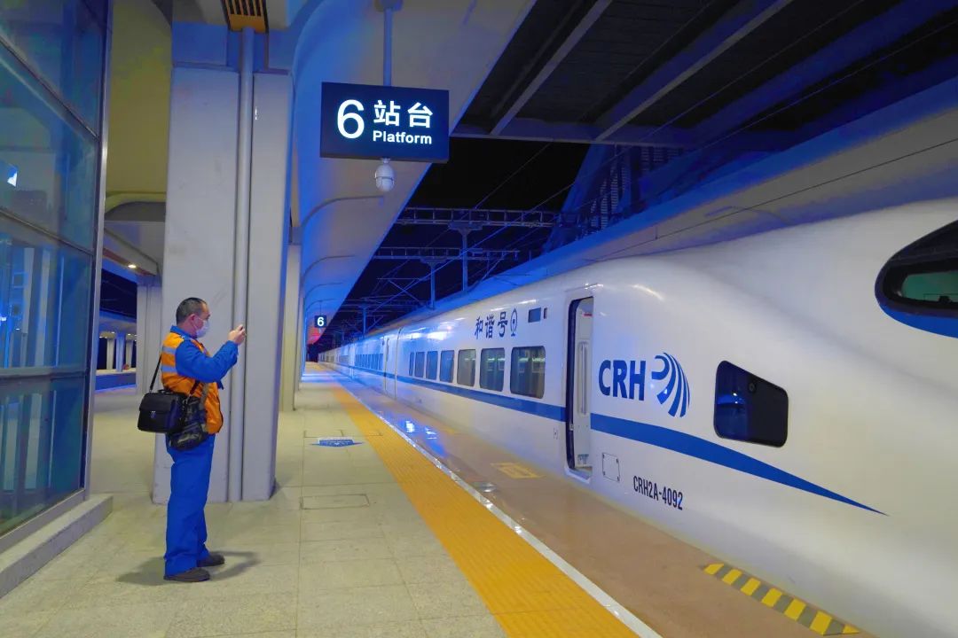 1小时后,DJ7902次列车安全返回红河站,车次变更为D8610次,是当天红河站开往昆明南站的首趟载客动车组列车。
