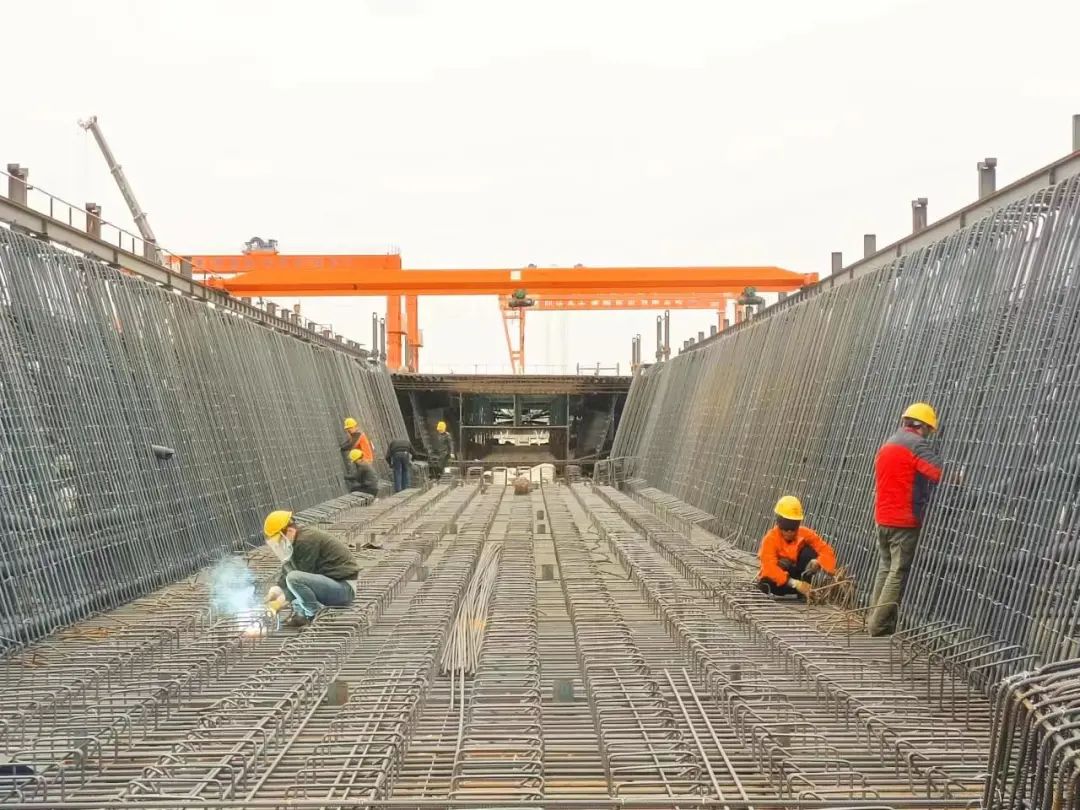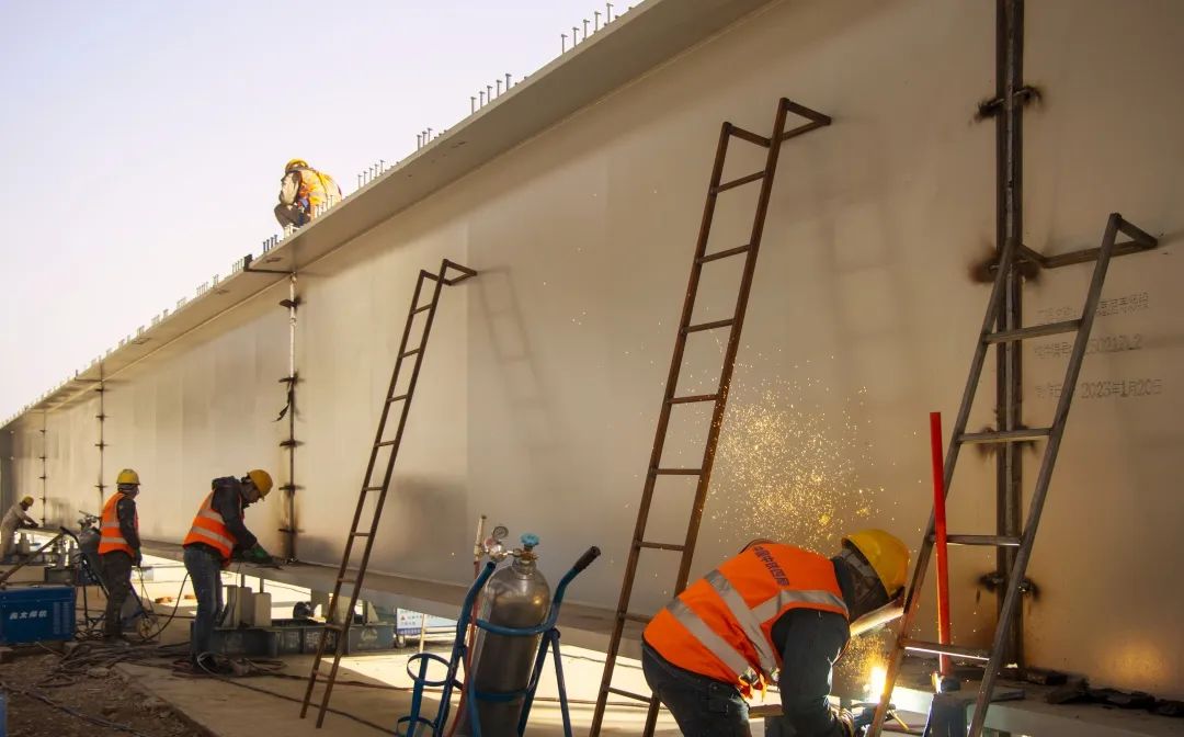 杭甬复线宁波一期项目整孔箱梁预制中心内,工人们正在焊接梁体钢筋模具。截至目前,项目累计完成投资166.93亿元,占总投资的92.79%,总体形象进度为90.64%。