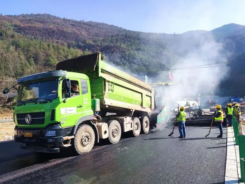 张南高速宣咸项目老山隧道出口路面工程火热施工。