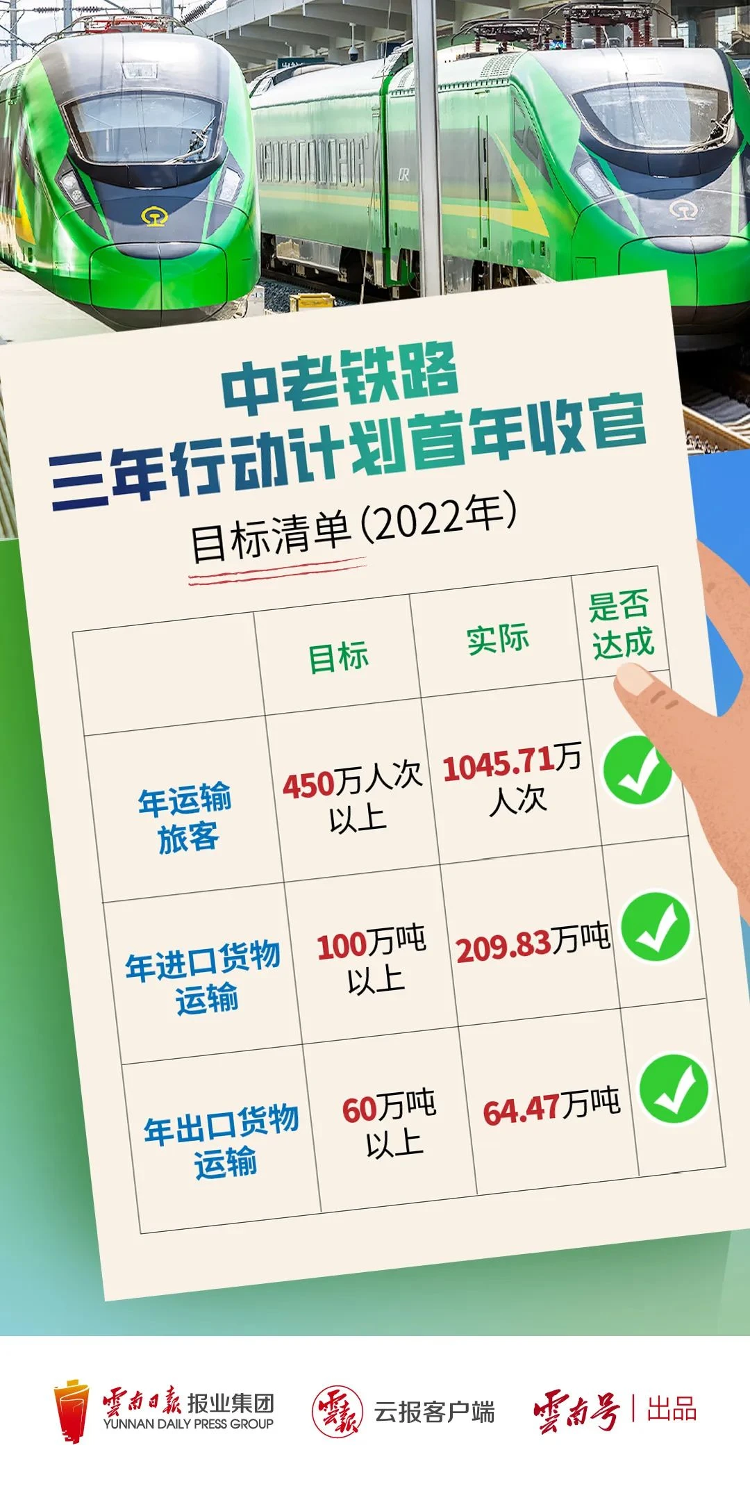 ●2023年,中老铁路年运输旅客700万人次以上;年进出口货物运输240万吨以上,其中,进口140万吨以上、出口100万吨以上。