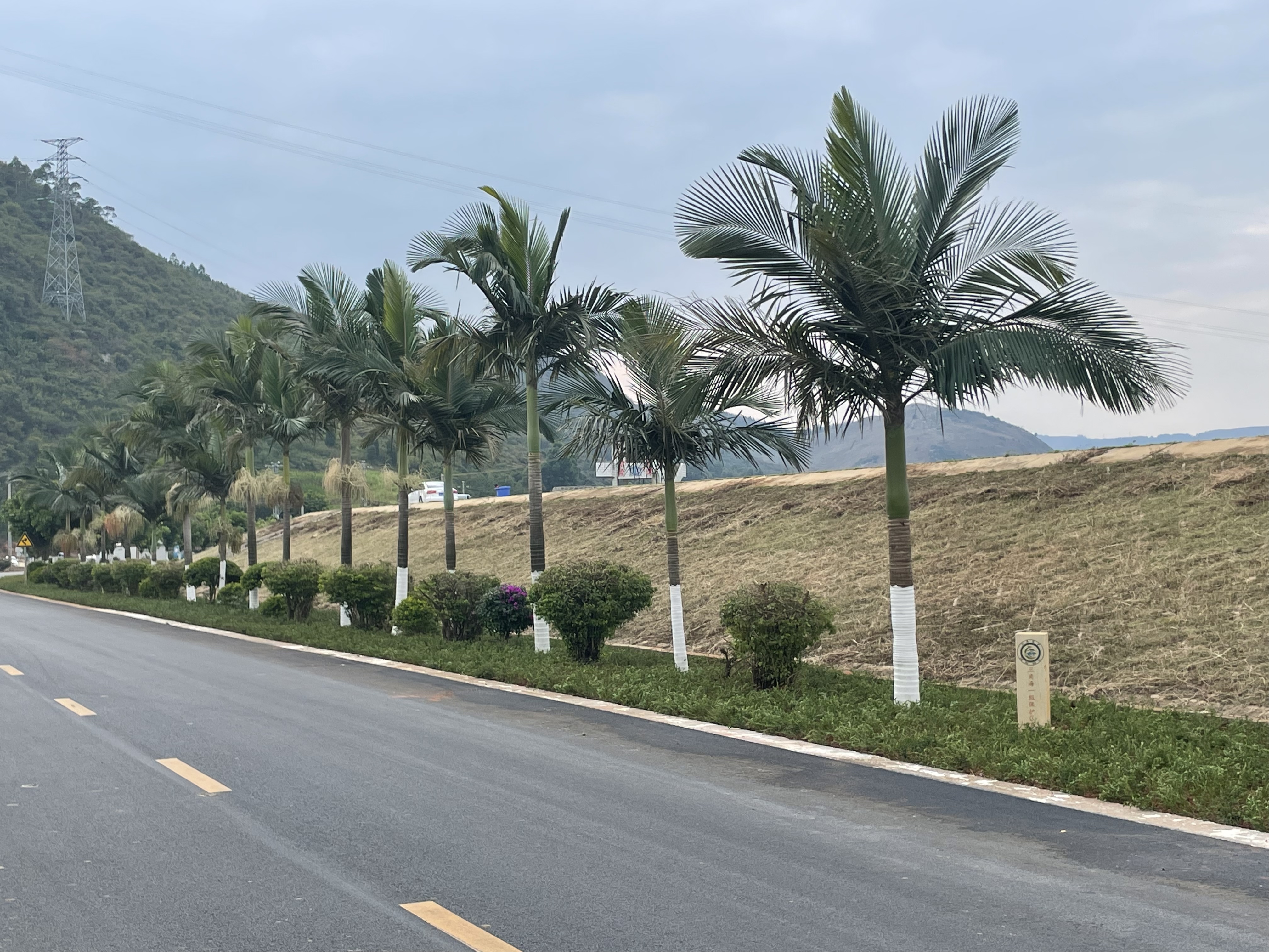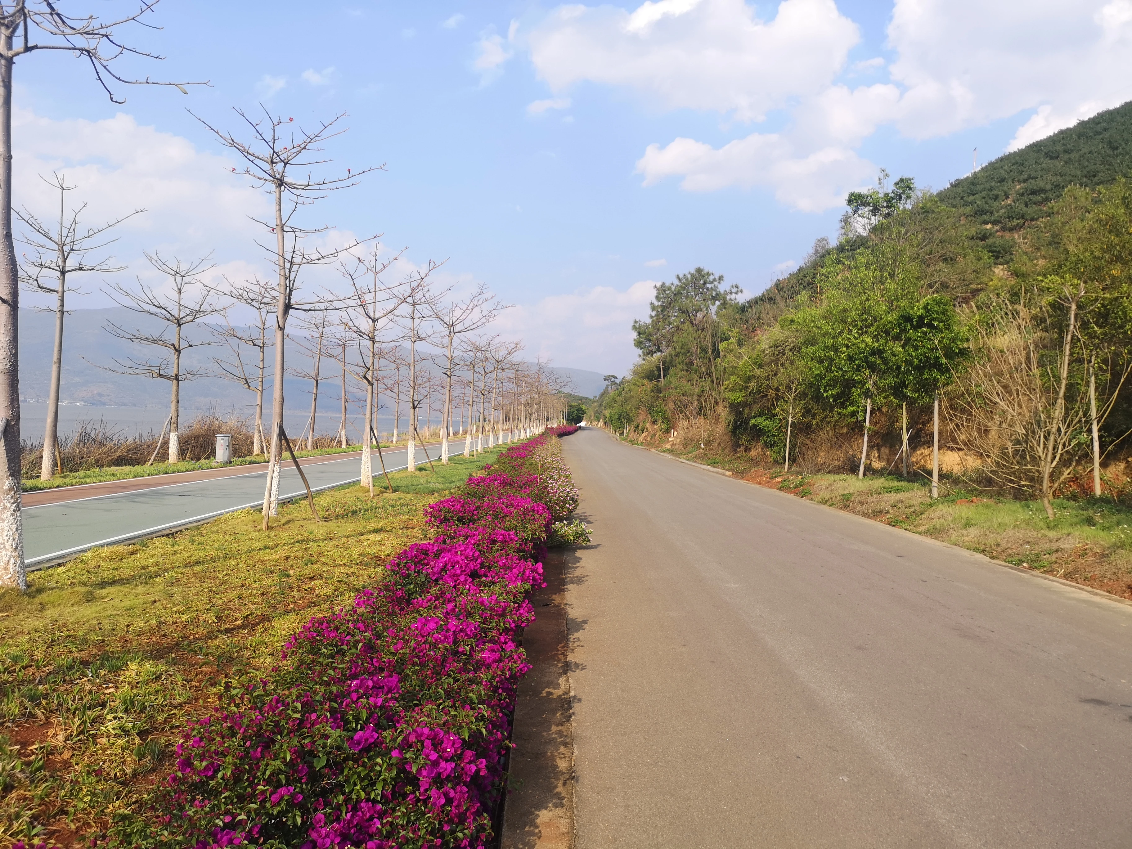 精准谋划与全面推进,下好“规划与建设同步”先手棋。坚持“以人为本、绿美惠民”为出发点和落脚点,实实在在推进农村公路沿线增绿扩美,科学设计论证,形成交通运输发展与生态环境保护相互促进的良好局面。根据《云南省绿美交通技术指南》,对全州公路绿化美化工作进行全面摸底,采用“一路一方案”设计模式,提高项目设计品质。在建、新建、拟建农村公路项目全部依照同标准、同要求,同步规划实施农村公路绿化美化。已建成项目则结合实际制定对应的绿化美化方案设计实施提升改造,增强绿美效果。同时,以“四好农村路”建设为契机,加快推进30户以上自然村通硬化路和具备条件的乡镇通三级公路等项目的建设进程,将绿化美化元素融入建设内容同步实施,实现了“农村公路通到哪里、风景就延伸到哪里、产业就发展到哪里”的目标,比如在高海拔地区,优先使用云南樱花、云南雪松等本地抗寒性优良的阔叶与常绿乔木,搭配种植红叶石楠、红花繼木等灌木植物;在热带地区,主要种植菠萝蜜、木瓜、芒果等经济作物,成熟后由村集体采摘出售,在绿化美化的同时兼顾发展村级集体经济。同时,视道路情况,种植蓝花楹、三角梅、木棉等进行点缀,兼顾管养的便捷性。