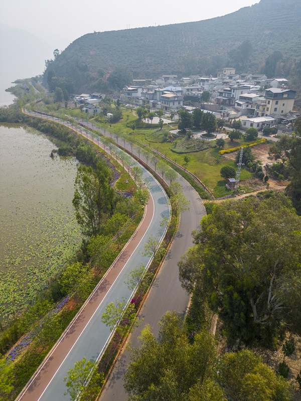 异龙湖畔绿美公路的建设,对阻断异龙湖面源污染起到了极大的作用,让高原明珠异龙湖更加靓丽,碧水映蓝天,绿树衬繁花,鱼虾竞自由,水鸟任意飞。昔日“香稻花轻玉露稠,月明渔话满船头,小蛮打桨溟濛里,海菜腔尖醒睡鸥”的美丽景致再次重现。