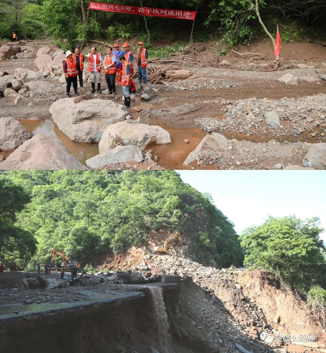 灾情发生后,楚雄公路局到现场勘查灾情,并及时上报省公路局。同时与双柏县政府沟通汇报,联合路政、交警等部门采取临时交通管制措施,并设置劝返点,劝导过往车辆及驾乘人员绕行。调派局机械化养护和应急中心人员和机械设备赶赴灾毁点配合双柏分局开展抢修工作。共调派应急抢险人员30余人、装载机3台、挖掘机4台、车辆6台。