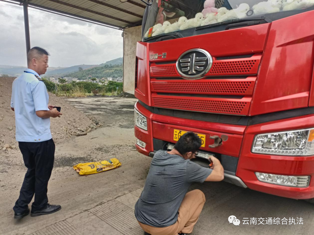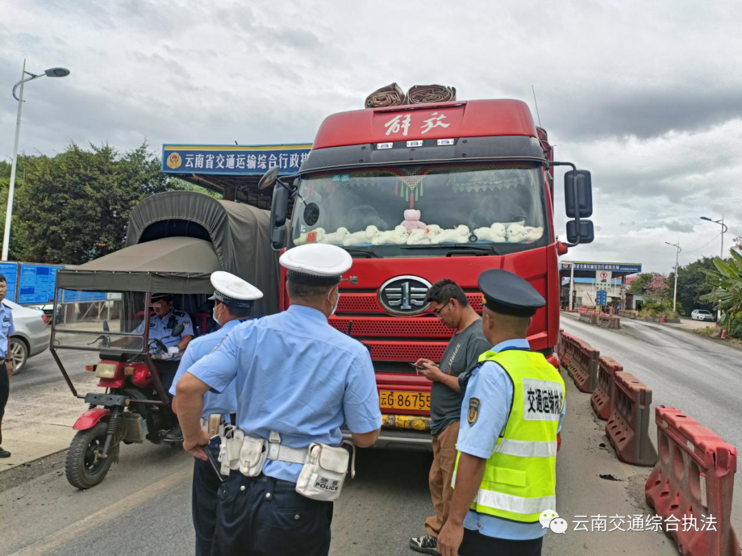 积极协调。开远大队主动作为、积极协调,联合公安交警、地方交通运输执法机构、开远公路分局等部门集中开展专项整治行动。白土墙超限运输检测站于9月27日查获严重超限“百吨王”货车1辆、超限货车1辆,督促卸载超限货物142.95吨;协助交警部门查扣涉嫌带车及遮挡违法超限运输货车号牌的三轮摩托车1辆;监督驾驶员现场拆除强光灯1套。